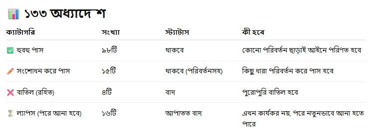 ১৩৩ অধ্যাদেশের কোনটি টিকছে, কোনটি বাদ—জেনে নিন বিস্তারিত